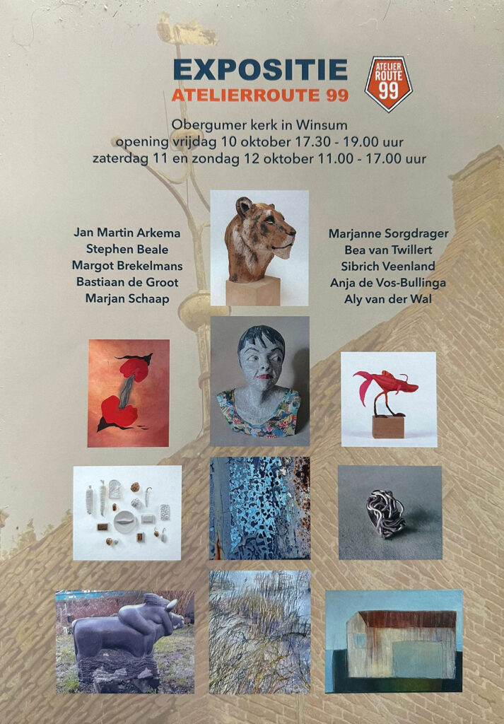 Naast een gezamenlijke expositie (zie de poster hier boven) is mijn atelier is een zestal zondagmiddagen open tussen 13.00-17.00 uur. Voor 2025 betreft het 28 september, 26 oktober en 30 november en voor 2026 gaat om 29 maart, 26 april en 31 mei.